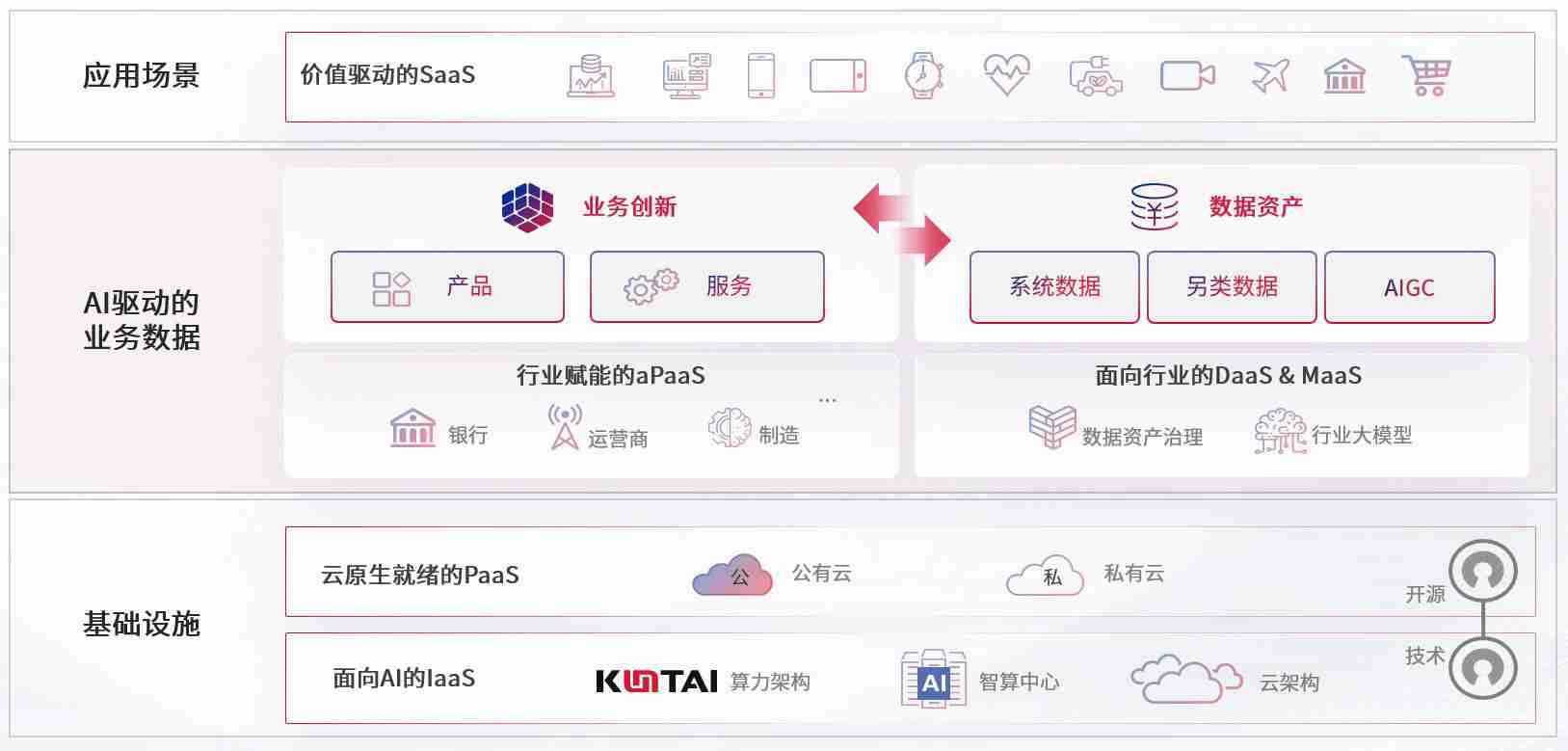 数字时代,,,围绕企业数字化转型的关键要素,,z6com尊龙凯时数码开创性的提出数云融合战略和技术体系框架,,,,着力在云原生、、数字原生、、AI原生和信创产业上架构产品和服务能力,,,,为处在不同数字化转型阶段的快消零售、、、、汽车、、、、金融、、、医疗、、、、政企、、、教育、、、运营商等行业客户提供泛在的敏捷IT能力和融合的数据驱动能力,,构建跨界融合创新的数字业务场景和新业务模式,,助力企业级客户建立面向未来的核心能力和竞争优势,,,,全面推动社会的数字化、、、智能化转型升级。。。